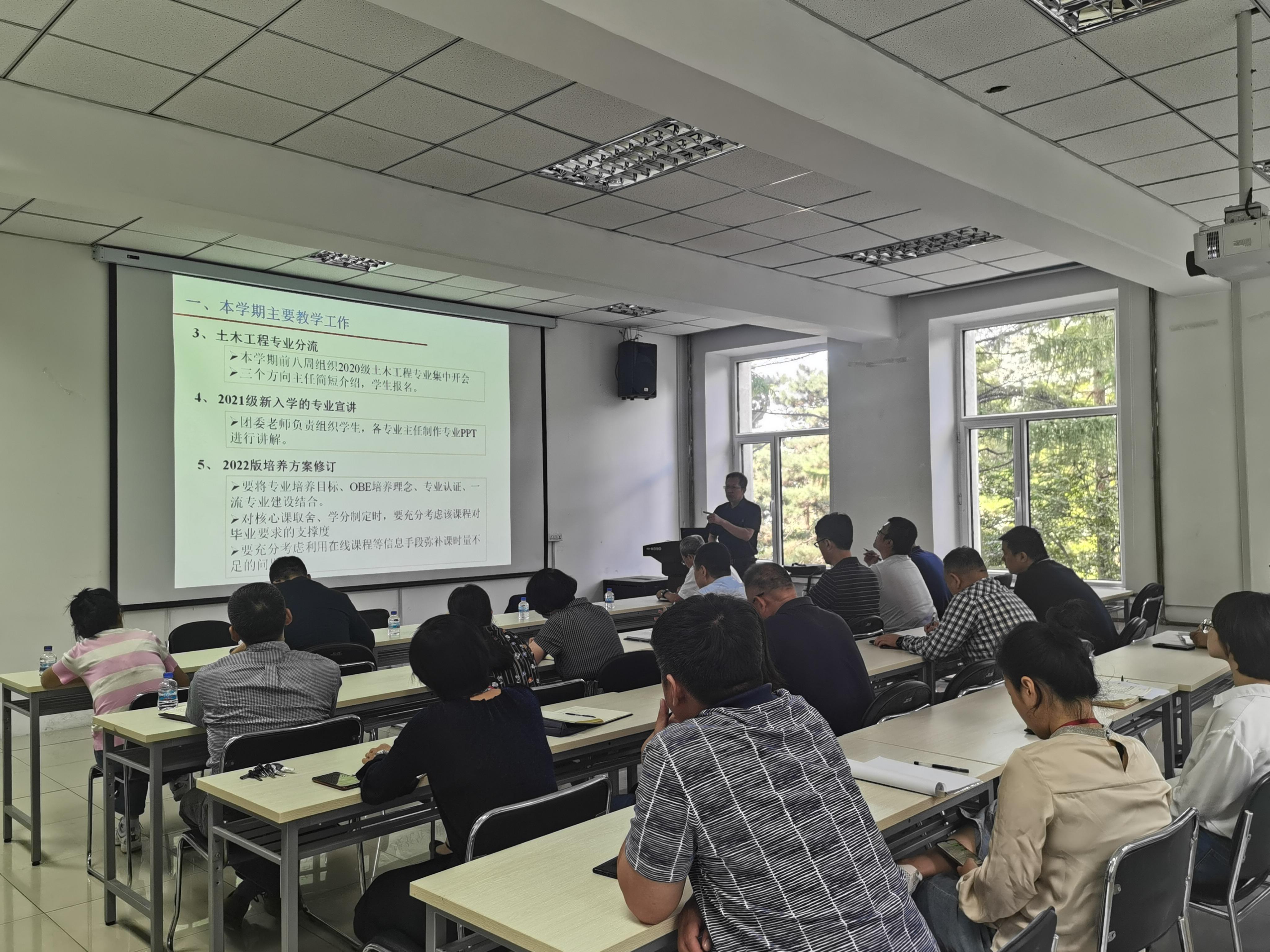首先,程东辉副院长对近期转专业、土木专业方向分流、2022版人才培养方案修订等教学工作、学院专业建设、课堂教学质量综合评价实施办法、上学期教学KPI获得成绩及进展等4个内容做了总结及工作布置。随后,孙维国副书记对新生入学教育、2021届毕业生就业、在校生管理、转专业学生、本科生推免工作等5个内容进行了汇报总结。最后,程培峰院长进行了总结发言。