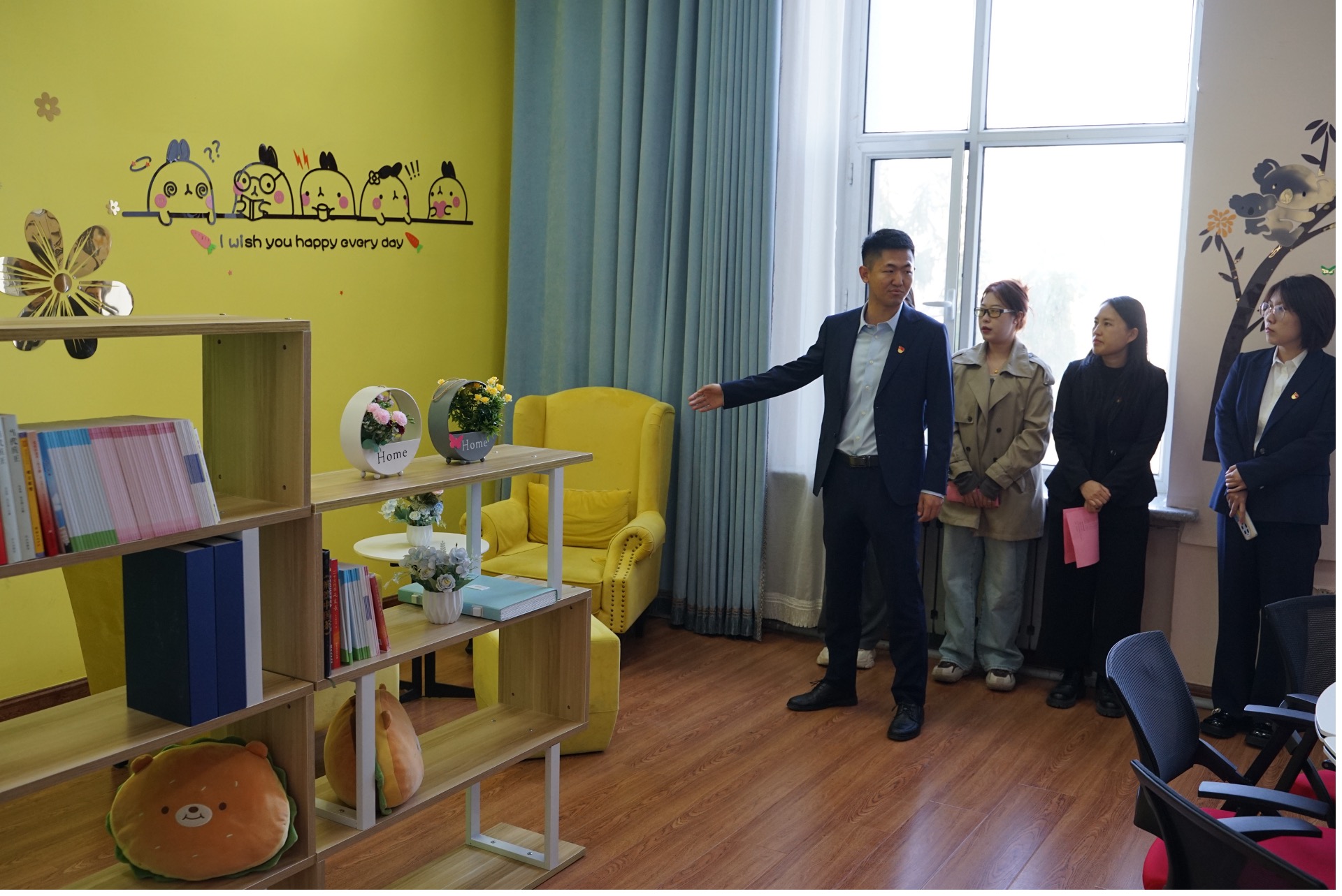 会前与会嘉宾参观了学院心理咨询室、共青团工作展板、党建工作室。