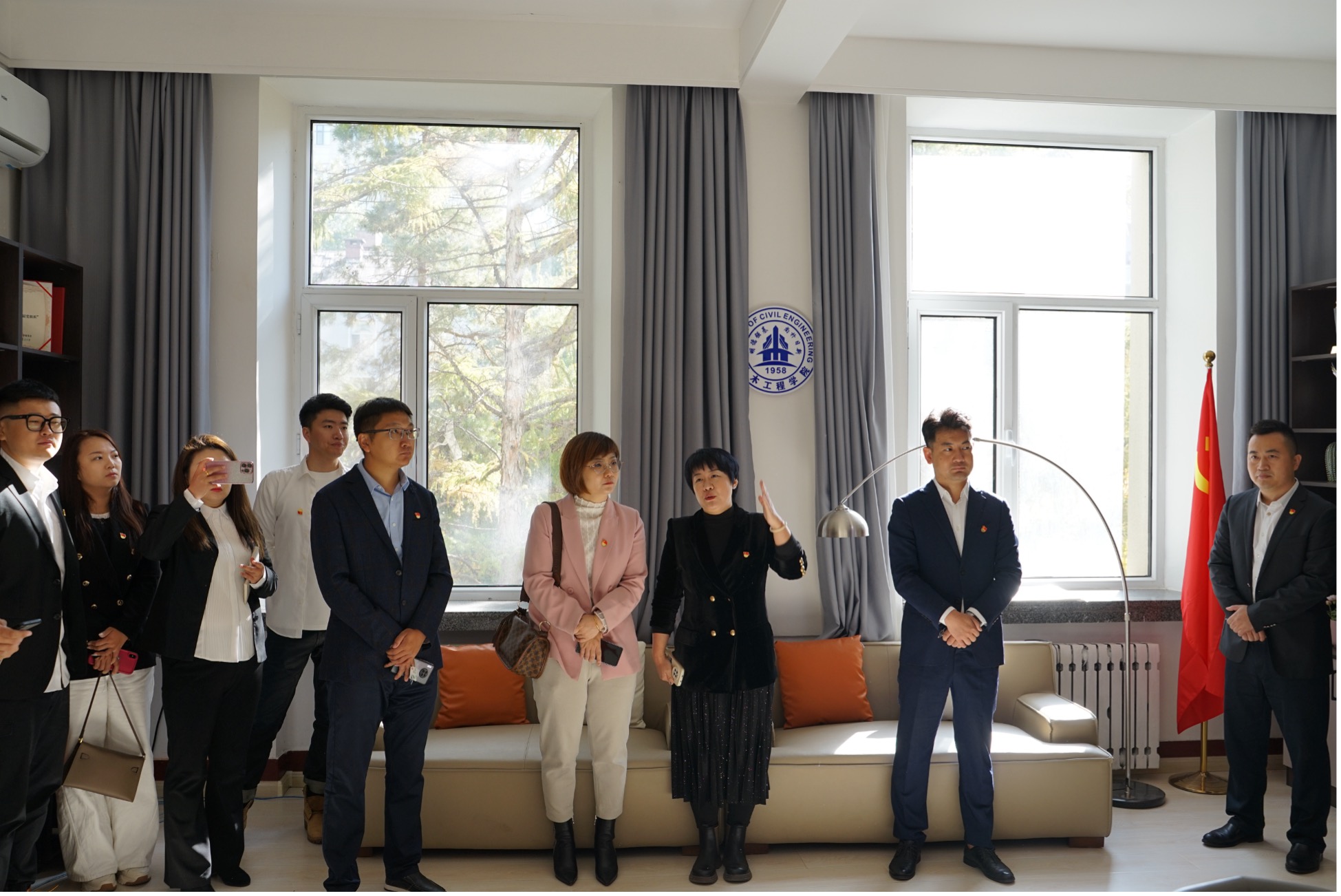 副处级组织员王恒老师带领参观学院党建工作室