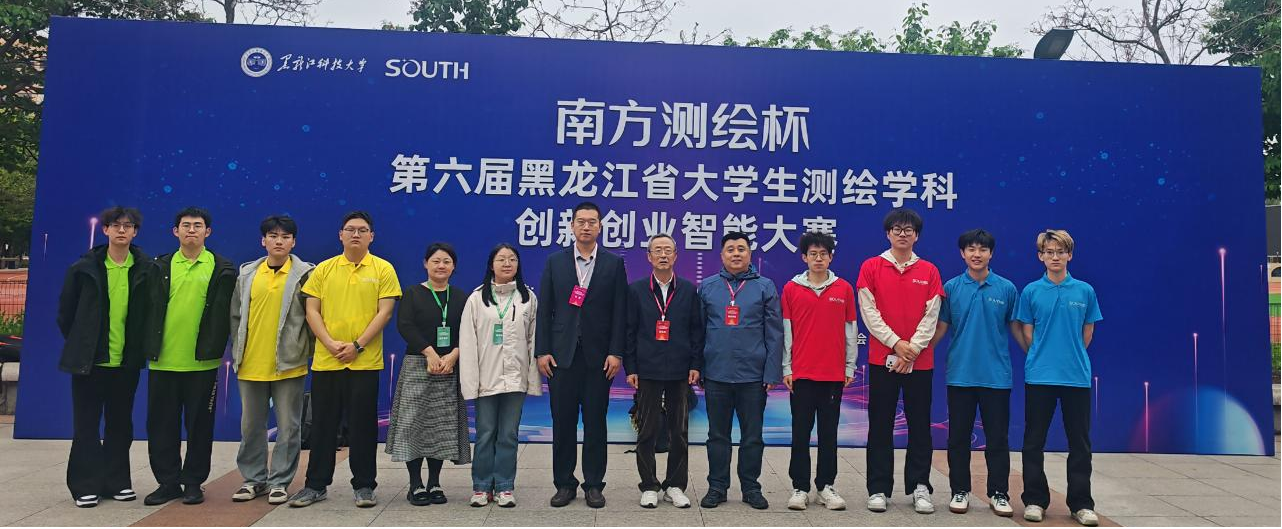 5月16日至17日,由黑龙江省教育厅与黑龙江省测绘地理信息局联合主办的“南方测绘杯”第六届黑龙江省大学生测绘学科创新创业智能大赛在黑龙江科技大学隆重举行。来自全省 35 所高校的测绘学科精英学子同场竞技,我校测量代表队凭借扎实的专业素养与出色发挥,在激烈角逐中脱颖而出,一举斩获团体特等奖,用实力书写了测绘学科人才培养的新辉煌!参赛的八名同学均取得优异成绩。