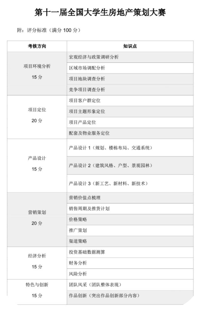 为深入贯彻落实十九大“深化产教融合、校企合作”精神,适应房地产业新理念、新思想、新战略,满足房地产业新知识、新模式、新业态对优秀适用人才的需要,发挥协会、高校、企业三方作用,推动“产学研用”四方面联动发展,由中国房地产业协会指导、中国建设教育协会主办、房教中国和相关院校承办,开展第十一届全国大学生房地产策划大赛(以下简称“策划大赛”),本届大赛决赛将在11月22日-24日在深圳大学举办,现由土木学院工程管理专业举办此次大赛的校内选拔赛,代表必赢线路检测中心参加第十一届全国大学生房地产策划大赛的总决赛,校内选拔赛的赛程如下: