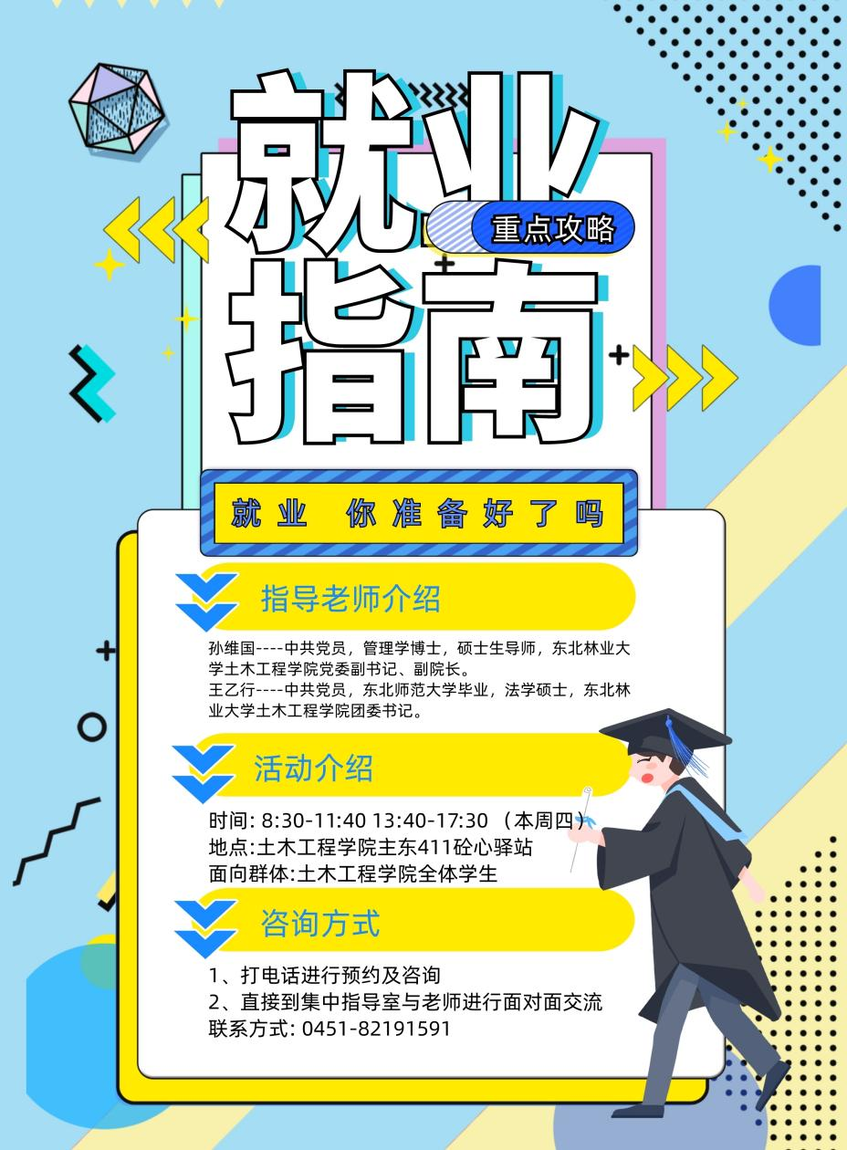 本周四(6月10日)将开放第一个以“就业,你准备好了吗”为主题的就业咨询集中指导日,由必赢线路检测中心党委副书记、副院长孙维国及团委书记王乙行两位老师为我们带来指导,了解行业信息,搭建交流平台,树立正确就业择业观,为土木学子的求职之路保驾护航。