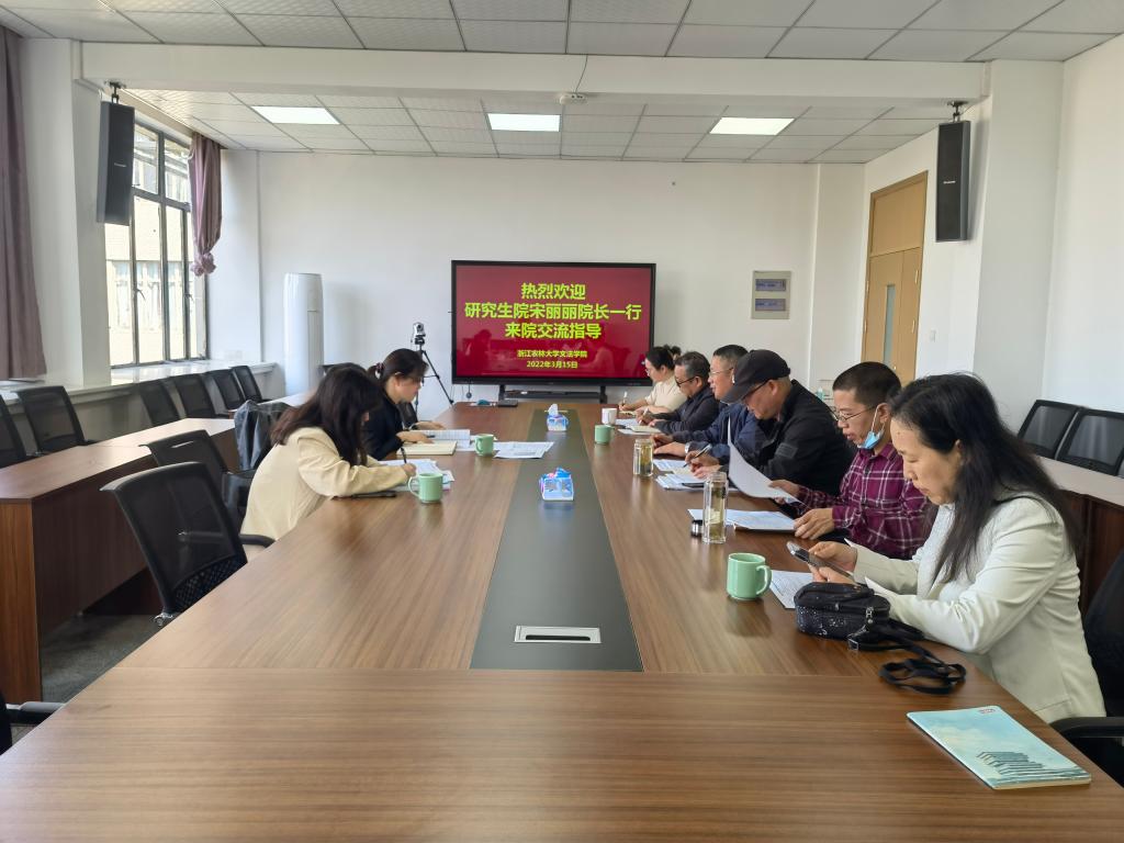鲁可荣感谢宋丽丽对学院的关心支持,并简要介绍了学院研究生学位点申报进展情况。学院相关负责人汇报了近期研究生工作。