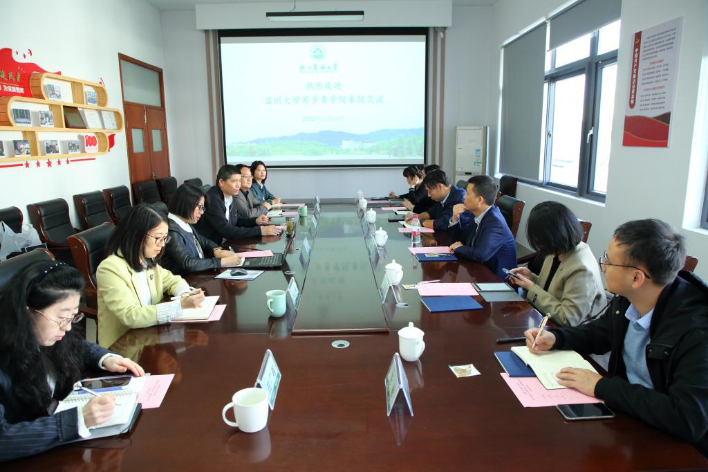 10月24日,温州大学苏步青学院姜锐执行院长一行来集贤学院调研拔尖创新人才培养工作。学院院长秦华及相关负责人和工作人员参加座谈交流。