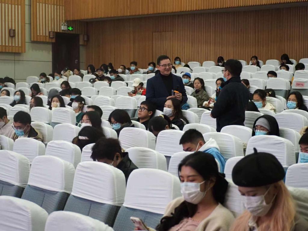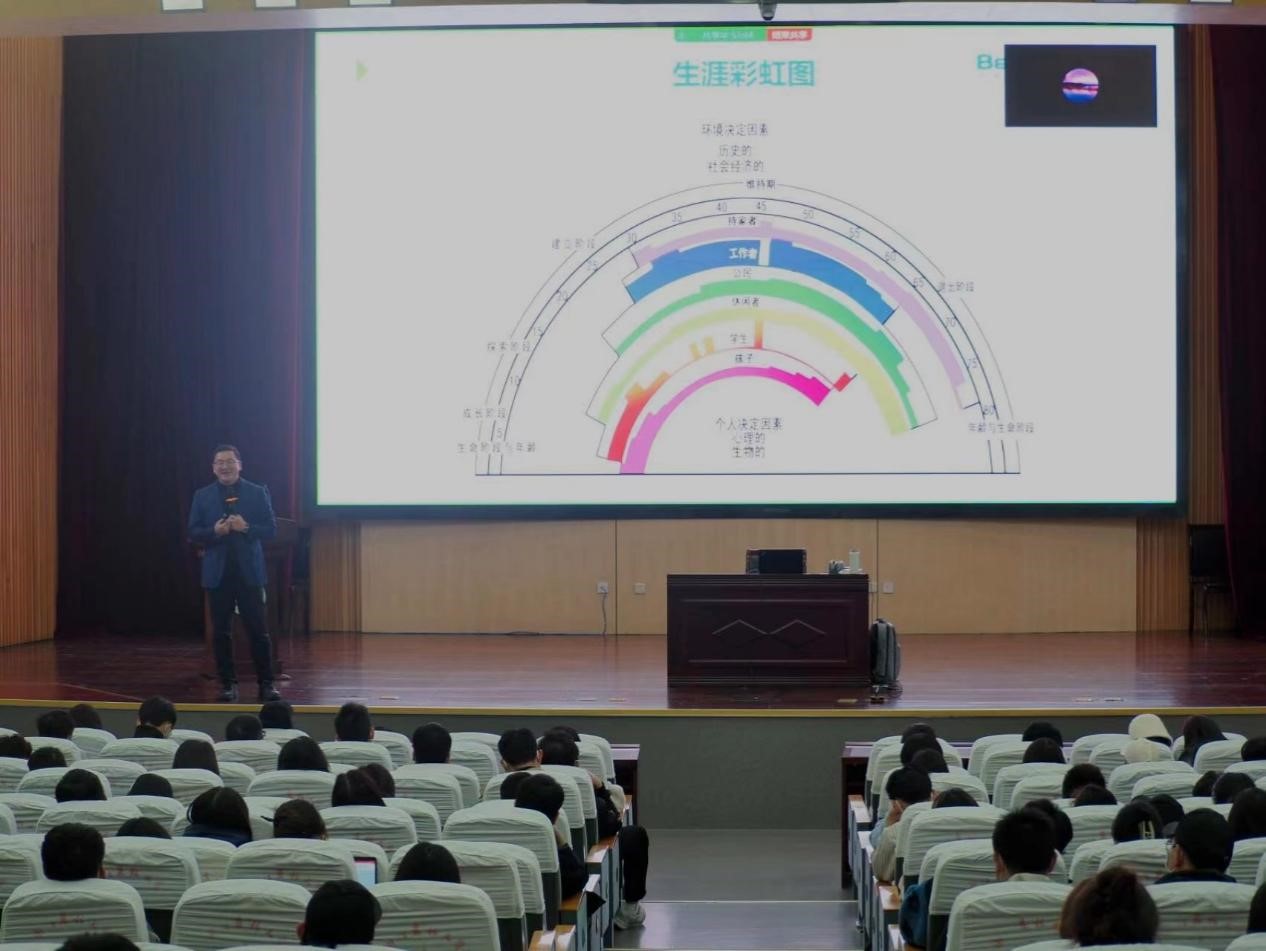 本次活动邀请了全球生涯教练,全球职业规划师,北森生涯TTT高校职业规划教学讲师陈尚飞作题为《开启你的英雄之旅》的主题报告。陈尚飞通过播放视频、现场测试、互动游戏等方式带领同学们了解自身兴趣,探索职业价值观,寻找合适自己的职能岗位。同时陈老师叮嘱同学们做好职业规划三步走的准备,瞄准目标并学会分解目标,把时间与精力放在追求目标的轨道上,做好职业生涯规划。