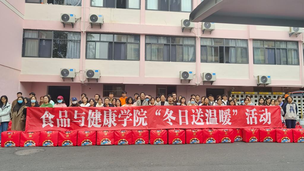 11月24日中午,食健学院“冬季送温暖”活动在东湖校区B6学生公寓楼下举行。学院相关领导、辅导员及受助学生80余人参加活动。