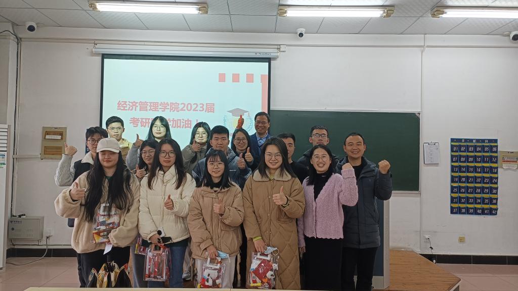 12月8日,经管学院开展2023届考研加油鼓劲活动。经管学院相关负责人,学生办辅导员以及2023届考研同学们参加了此次活动。