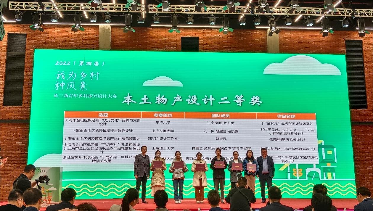 3月23日,2023“我为乡村种风景”长三角青年乡村振兴设计大赛在上海市金山区长三角路演中心圆满收官。BEAT365学子袁雨蝶、王文倩、付裕菲等同学的作品《山水·千岛》在曹肖兵、孙茂华老师的精心指导下,从400余件设计参赛作品中脱颖而出,获得全国二等奖。