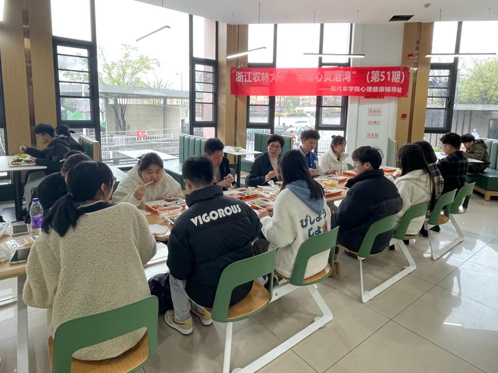 3月24日中午,农学院组织开展“东湖心灵港湾”(第51期)活动。活动邀请农学院党委书记梁卫玲为毕业生代表作专题分享,学生办全体辅导员和本科、研究生毕业生代表参加活动。