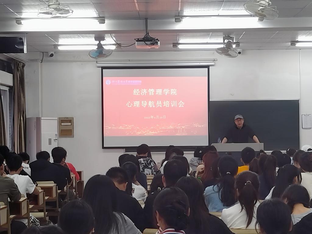 4月20日,经济管理学院于教学主楼502举办了心理导航员培训活动。本次培训由校心理健康教育中心戎幸老师主讲,各班心理委员、心理导航员等130余名同学参加培训。