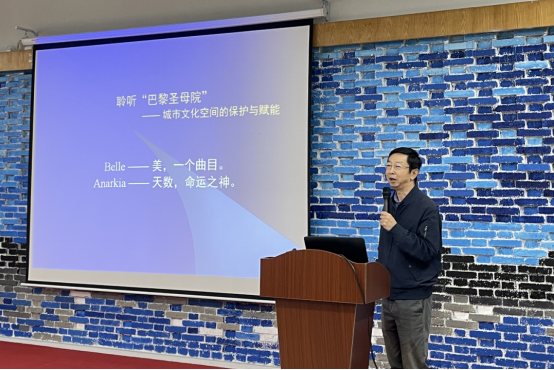 华晨教授从城市与文学的关系切入,提出了什么是规划之美、建筑之美,分析了巴黎圣母院的建筑历史演变,基于巴黎圣母院文化空间的形成过程,剖析了城市遗产保护的原真性,并以自己“50名中国建筑师在法国”的高级访问学者经历,介绍了典型的法国城市文化空间。华晨教授以雨果撰写的《巴黎圣母院》文学作品和“巴黎圣母院”歌剧为载体,解析了城市文化的构成要素与空间表达,以此为例,引申出城市历史空间保护的不同群体的利益诉求以及城市更新中的规划博弈,强调了文化传播对于城市历史空间保护与活化的重要性。讲座主题把握学科前沿,内容条理逻辑清晰,讲演风格生动有趣,引起在座师生强烈反响。