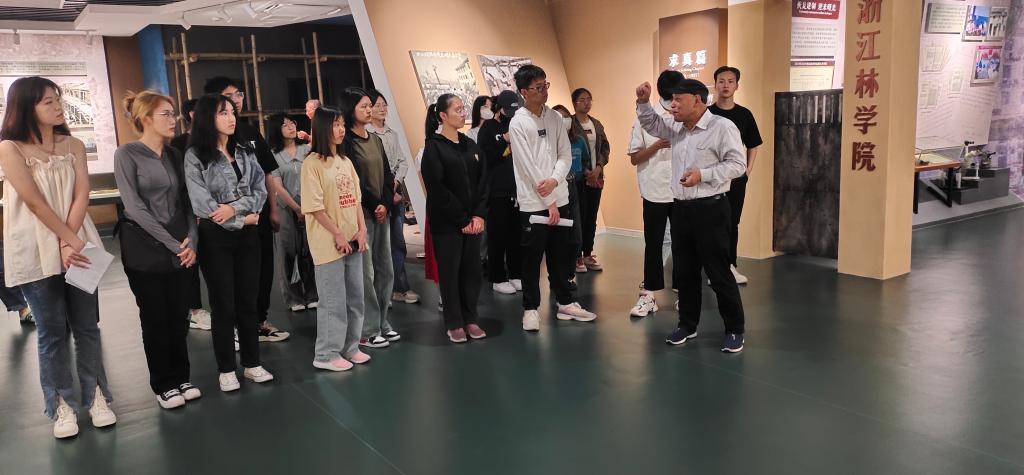 校史馆义务讲解员从校史馆序厅学校校训“求真、敬业”的背景和内涵开始讲解,以浙农林大精神为引领,以校园文化为脉络,结合自身的工作经历,为同学们带来了一场生动有趣的校史讲座。