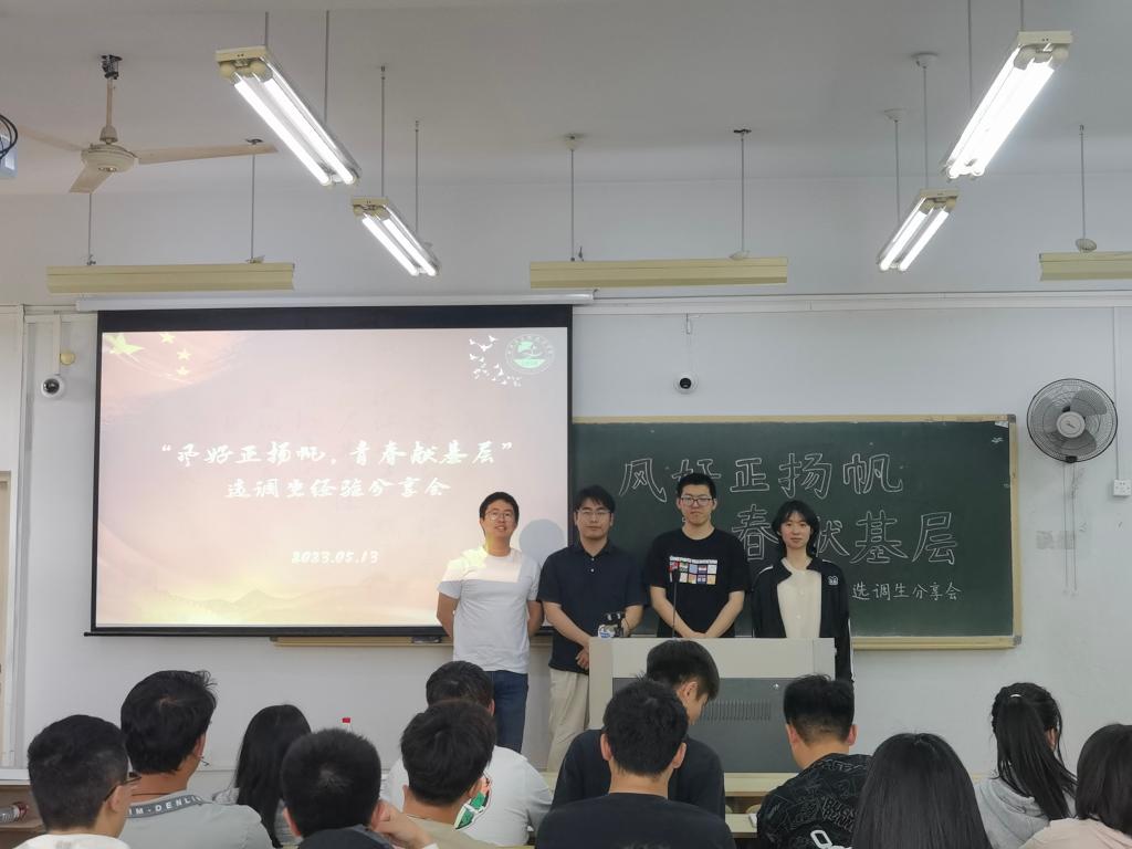 5月13日,林生院举办了“风好正扬帆,青春献基层”选调生经验分享会,邀请4位校友回母校分享选调生一线工作的日常以及备考经验。