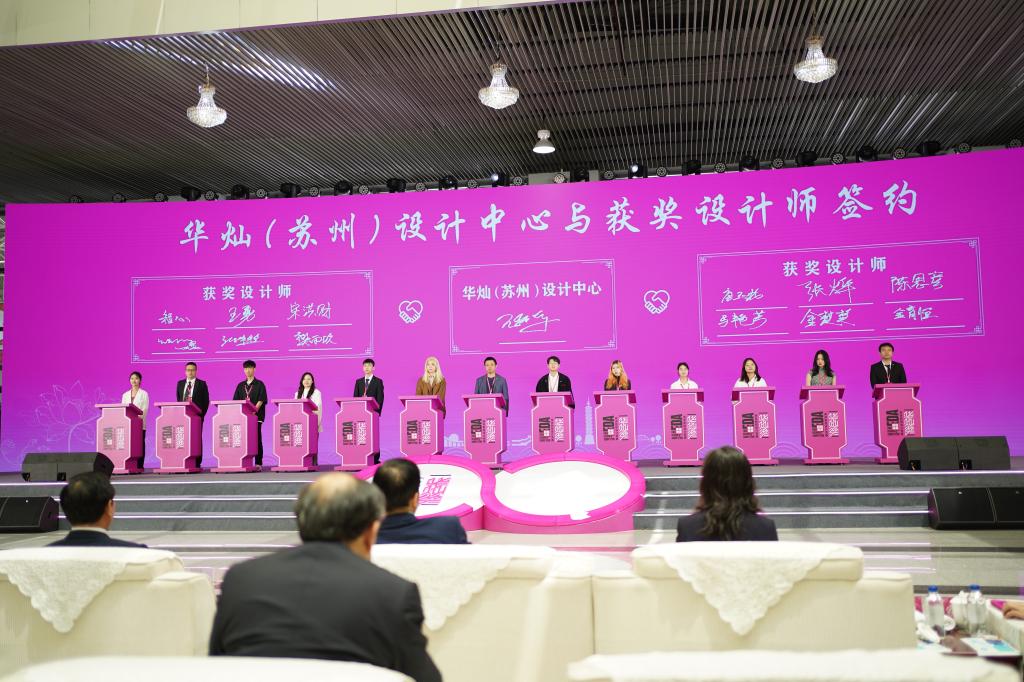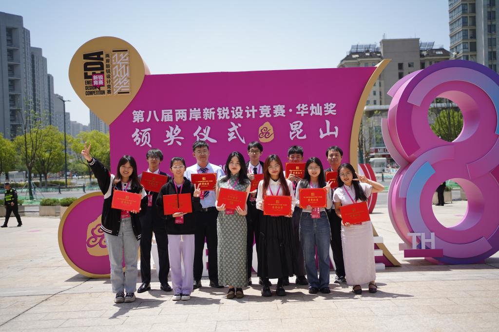 5月23日,第八届“两岸新锐设计竞赛·华灿奖”颁奖仪式在江苏省昆山市举行。文法学院广告学专业获奖学生和教师代表参加仪式。颁奖仪式上,文法学院获奖学生与华灿(苏州)设计中心成功签约。