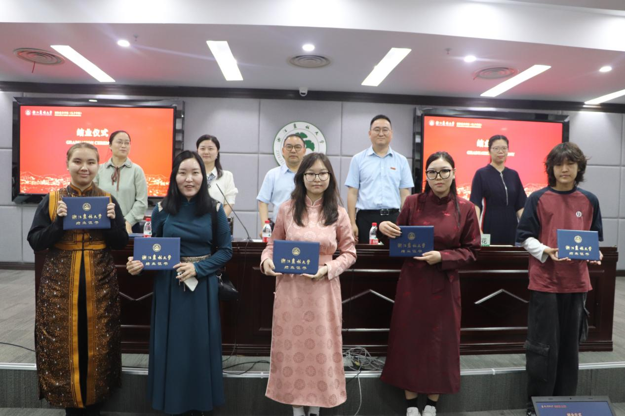 院长赵有华代表学院对国际学生顺利完成学业表示祝贺,预祝同学们鹏程万里、前程似锦,希望同学们永远记住BEAT365英国官网,牢记“求真、敬业”的校训,发扬“坚韧不拔、不断超越”的学校精神,满怀豪情、勇担使命,努力成为中外友谊的使者和桥梁,共同倡导人类命运共同体,为全人类谋幸福。毕业生们表达了对学校、学院和老师们的衷心感谢,表示了对浙农林大的深深留恋之情。