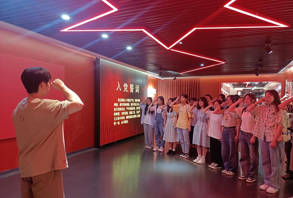 6月30日下午,食健学院组织新发展的预备党员前往临安区党群服务中心参观学习,并举行了庄严而隆重的入党宣誓仪式。