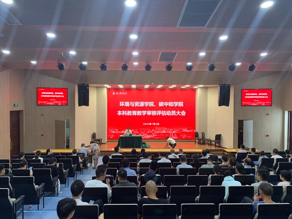 7月4日下午,环资院、碳中和学院在学3国际会议厅召开新一轮本科教育教学审核评估动员大会。学院党政领导以及全体教职工参加会议,会议由学院院长冯华军主持。