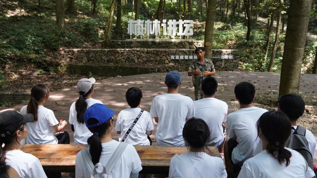 随后实践团参观了建德林业科普展示馆,通过寿昌林场副场长范建忠的讲解,实践团深切感受到正是建德林业人数十年如一日的坚守,将建德从一片荒山转变为“蓄宝于山,藏富于民”的森林城市。在林木良种基地,实践团与我院在当地开展自然保护地生物多样性长期监测样地建设和调查的师生团队进行了座谈交流,了解了生物多样性监测的背景、意义、目的和要求,以及目前所开展的工作。