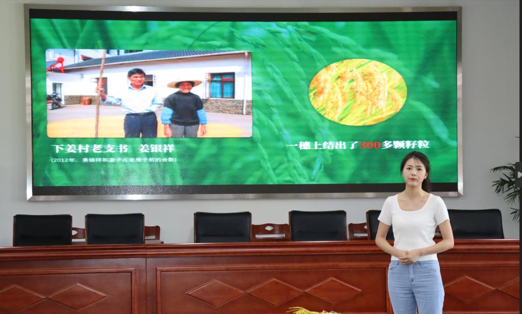 辅导员张韵以《做一粒好种子——守护大国粮仓,贡献青春力量》为题,以“一把稻穗”开头,讲述了下姜村村支书姜银祥用“南优2号”让下姜村人民吃饱饭,袁隆平院士与杂交水稻的诗和远方,呼吁青年学子“要做一粒好种子”,扎根爱国土壤,守好大国粮仓,贡献青春力量。