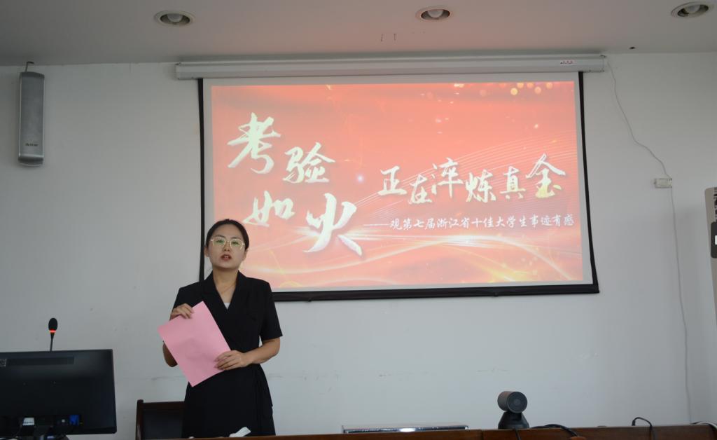 辅导员张慧丽以《考验如火,正在淬炼真金——观第七届浙江省十佳大学生事迹有感》为题,通过讲述省十佳大学生中,来自BEAT365雷朝礼同学的防疫志愿服务故事,展现其在特殊时期,为民服务、敢于担当、不怕困难、迎难而上的精神。呼吁广大青年学生,在实现中华民族伟大复兴的新征程上勇挑重担、勇克难关、勇斗风险,在考验中淬炼本领,实现自我价值。