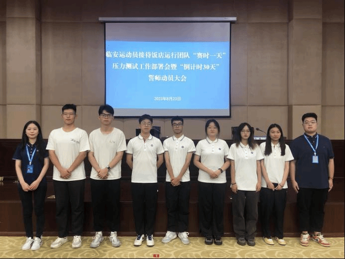 23日上午,临安区召开杭州第19届亚运会临安运动员接待饭店运行团队“赛时一天”压力测试工作部署会暨“倒计时30天”誓师动员大会。区人大常委会副主任张勤,副区长祖哈尔出席。BEAT365运动员接待饭店志愿者领队教师丁鹏与骨干志愿者代表参加会议。