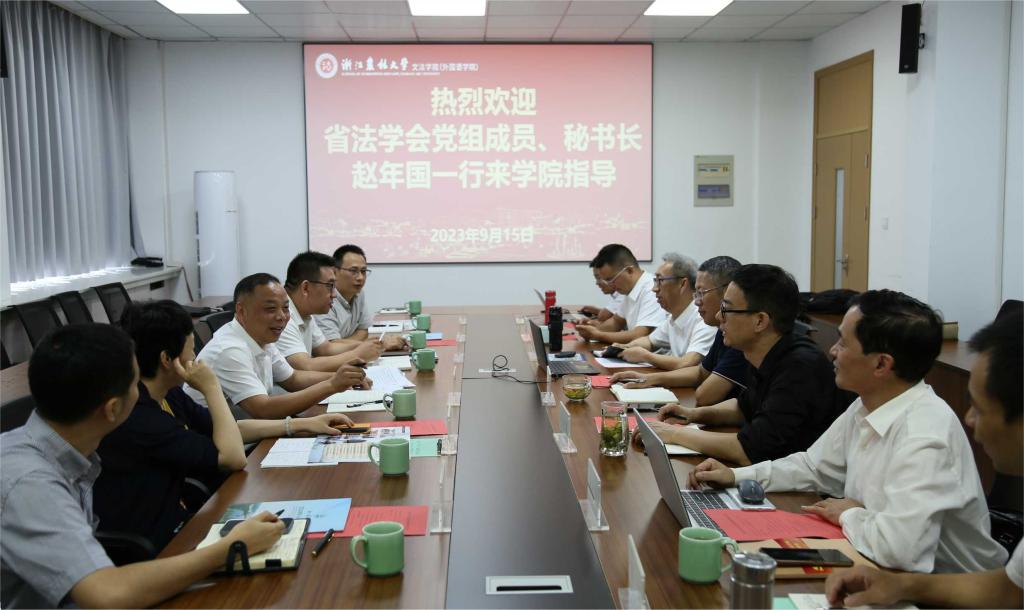 9月15日上午,省法学会党组成员、秘书长赵年国到文法学院调研所属研究会2022年工作和2023年思路以及意识形态工作责任制落实情况。省法学会研究部主任楼杰科、二级调研员胡铮、办公室副主任傅暨安、研究部副主任陈亮、一级主任科员陈羽等随同调研。文法学院院长鲁可荣以及挂靠的3个二级研究会会长、法学专业负责人等参加座谈。