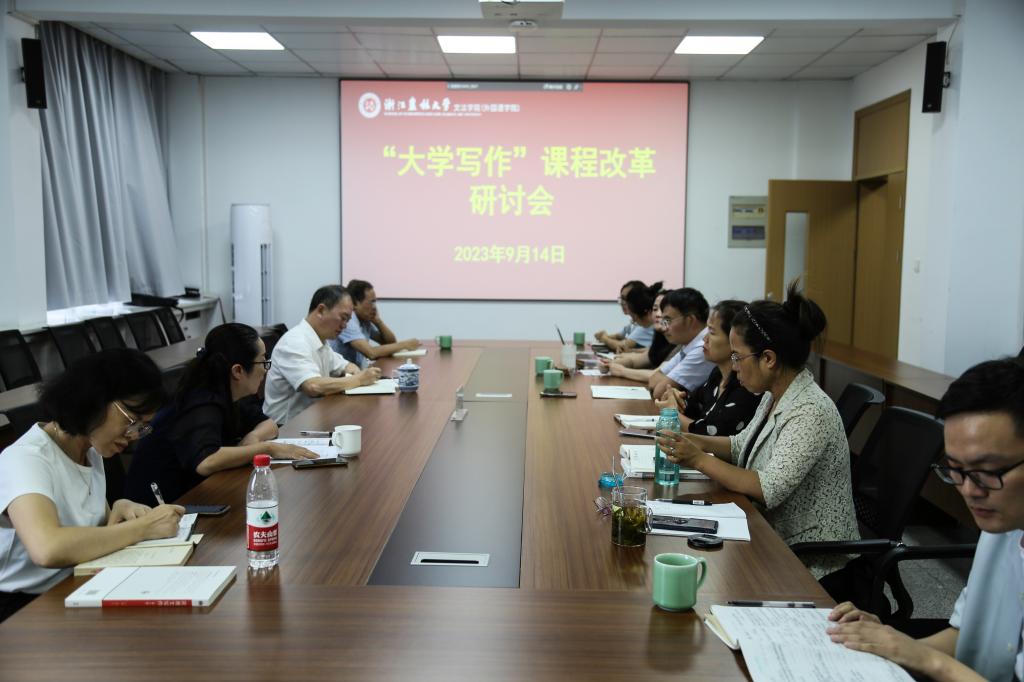 9月14日下午,文法学院举行《大学写作》课程改革研讨会。教务处处长郭建忠,文法学院党委书记朱红东及相关负责人,大学写作中心教师参加研讨会。