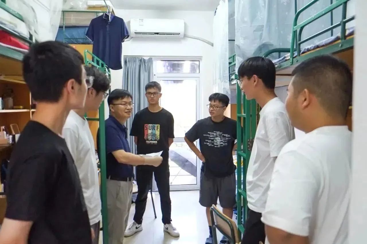 9月16日,数计学院党委书记冯金明及学院相关负责人带领学院辅导员和研究生学位点负责人走访新生寝室,了解2023级新生入学、入住情况,增进学院与新生间交流,帮助新生尽快调整状态、融入大学生活。