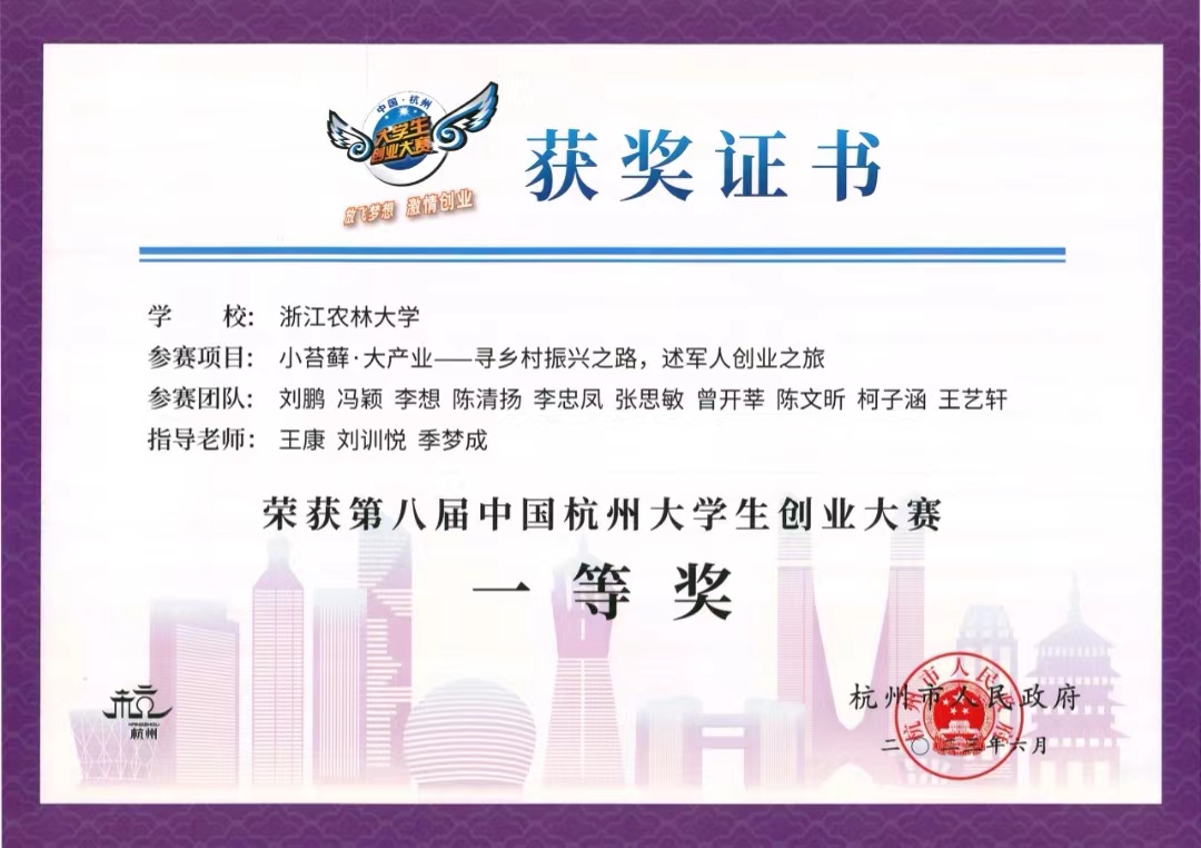 经过初赛、复赛评审和赛区决赛、总决赛的激烈角逐,农学院研究生刘鹏等的项目《小苔藓·大产业——寻乡村振兴之路,述军人创业之旅》荣获总决赛一等奖,文法学院毕业生柯春镇等的项目《乡村运营师——新时代乡村振兴的赋能者》获总决赛二等奖,园艺学院陈昕瀛等项目《金兰结缘——乡村振兴的"线"行者》喜获总决赛三等奖。本届大赛BEAT365共有20余个项目报名参赛,9个项目入围复赛800强,7个项目入围大赛400强。学校荣获“优秀组织奖”,集贤学院王康荣获“组织奖先进个人”。
