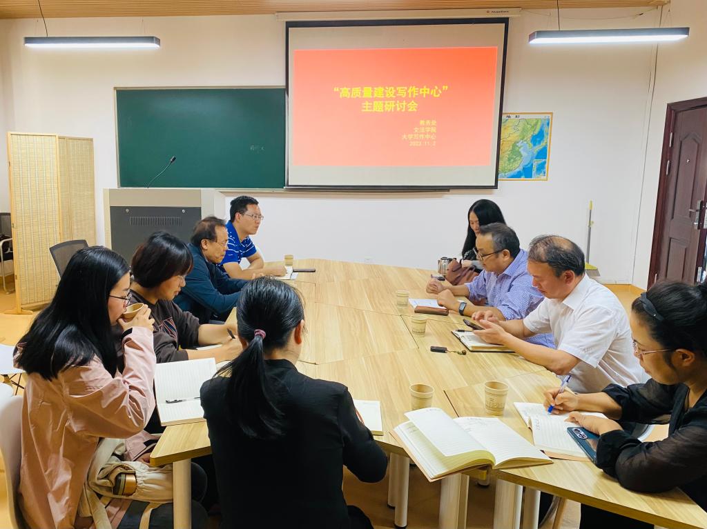 11月2日,文法学院召开“高质量建设写作中心”主题研讨会。文法学院党委书记朱红东、学院相关负责人出席指导,写作中心部分教师参加。