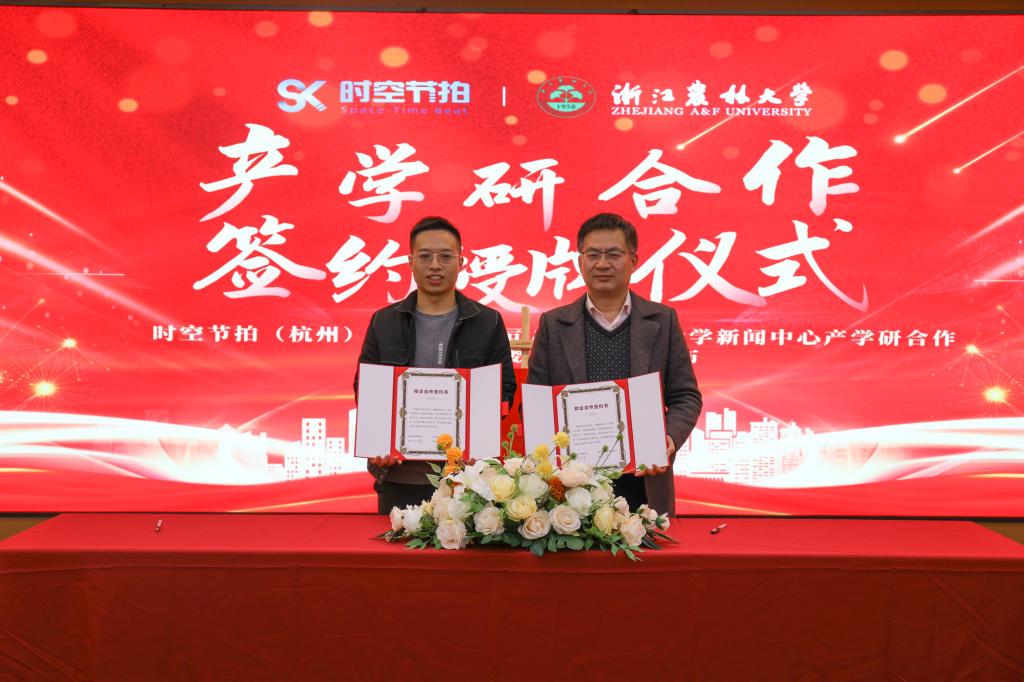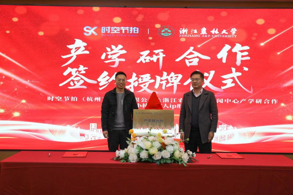 12月15日,校新闻中心与时空节拍(杭州)科技有限公司产学研合作签约授牌暨“农小林”数字人IP形象发布仪式举行。校新闻中心主任陈胜伟、时空节拍创始人兼总经理厉军、时空节拍联合创始人兼销售总监厉瑶瑶出席仪式。新闻中心教师、学生通讯社代表、时空节拍公司员工代表参加仪式。