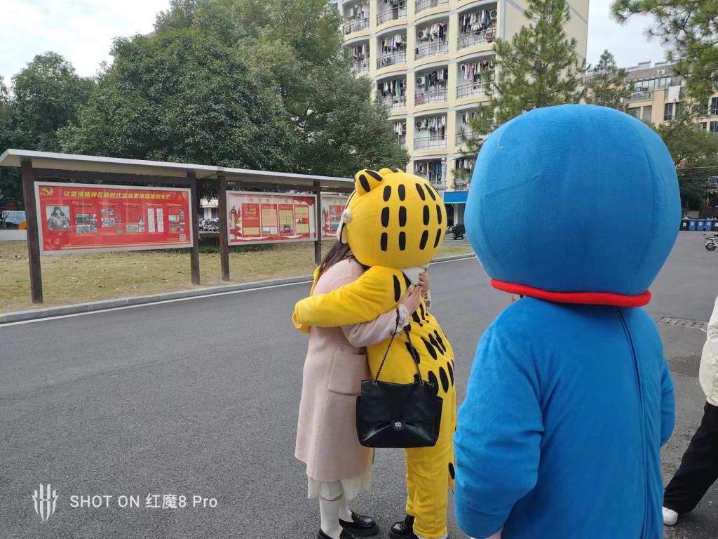 12月17日,文法学院心理辅导站在衣锦校区联建公寓门前举办“Free Hug”自由拥抱活动。