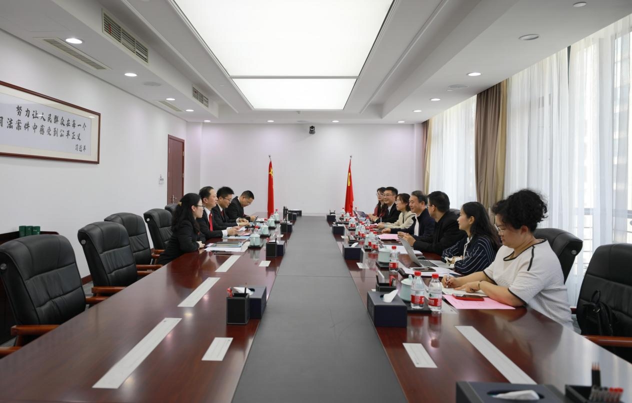 沈晓鸣对文法学院调研团的到来表示热烈欢迎,他介绍了宁波海事法院基本情况,表达了双方在涉外法治人才协同培养创新方面开展深入合作的热切期望,并组织法院有关人员,从人才培养、科学研究、提升海事司法国际影响力等多个方面,与学院教师进行了深入探讨。