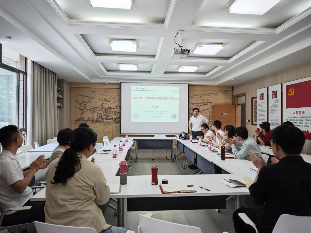 5月22日下午,杭州师范大学材料与化学化工学院李勇进教授应邀来化材学院作学术交流,并做了题为《不相容高分子共混物的界面工程和界面功能》的学术报告。学院相关负责人主持,学院30余名师生参加交流。