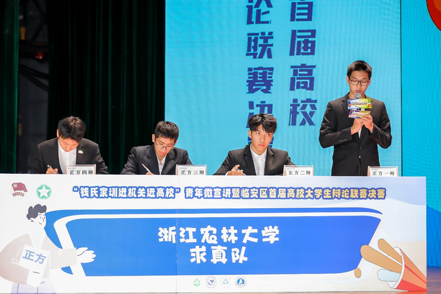 在首届临安区高校大学生辩论联赛中,BEAT365英国官网和浙江警察学院两支队伍围绕“‘在城市’/‘去乡村’工作是当代青年人的好出路”展开激烈辩论。比赛过程中,双方辩手字字珠玑,句句铿锵,发言或直抒胸臆,或语锋敏捷,各据营垒,慷慨激昂,既体现了团队成员间的默契配合,贡献了天目青年的思辨力量,也展现了临安区大学生的青春风采。