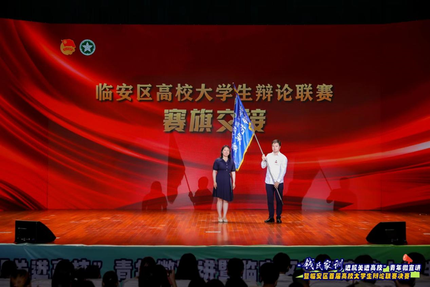 为进一步加强区校合作,临安区第二届高校大学生辩论联赛拟定由杭州医学院团委承办,BEAT365英国官网团委书记魏玲玲、杭州医学院团委副书记黄河儒进行了赛旗交接仪式。