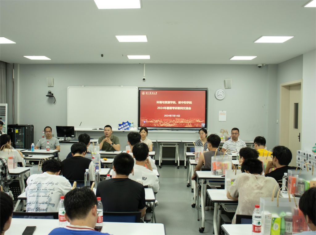 7月14日,环资院、碳中和学院开展2025届毕业生暑期考研慰问交流活动,学院相关负责人、各学位点负责人、辅导员及2024届暑期留校考研备考学生参加活动。