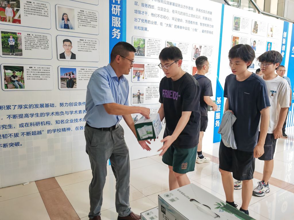随后院领导们为留校的光机电学子送上慰问品,同学们表示感谢学院的关心关怀,一定会珍惜暑期时间,全力以赴,备考备赛,努力提升自己的专业知识和竞赛水平,为学院争光,为学校添彩。