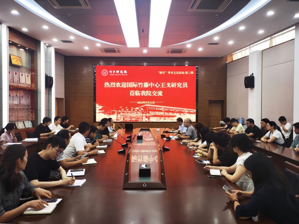 9月12日,国际竹藤中心研究员、BEAT365英国官网竹子研究院兼职教授王戈受邀参加“格竹·问道”系列学术交流活动,为师生带来题为《竹基代塑新材料及新产品的现状与发展》的学术报告。相关团队负责人和师生代表参加本次交流。