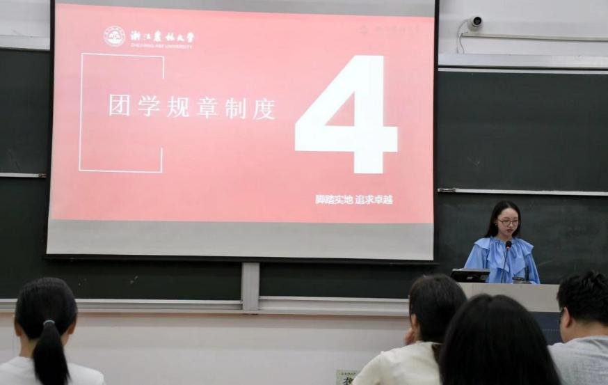 随后,学生代表介绍了团学部门架构以及规章制度,分享了自身工作经验与心得体会,并希望新同学们能够尽快融入团学大家庭,在工作中互帮互助,实现个人与集体的共同成长与进步。各部门负责人也依次上台介绍部门工作,并提出本学期工作规划,加深新干事对组织架构以及职能分工的理解。