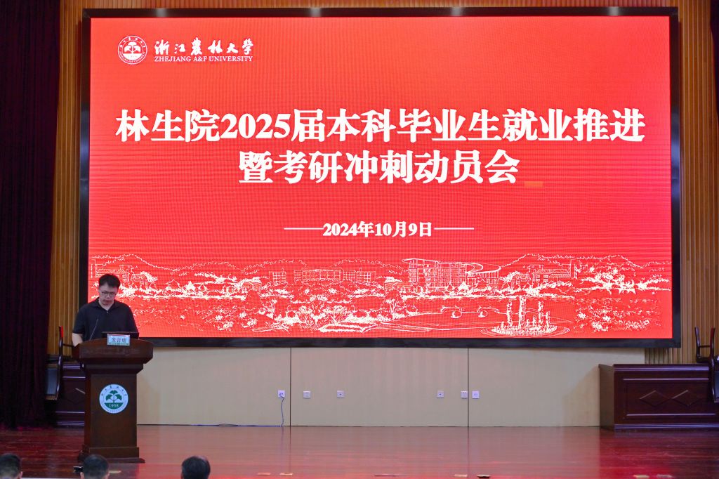 10月9日,林生院在图书馆第一报告厅举办了2025届本科毕业生就业推进暨考研冲刺动员会。林生院党委书记郑炳松、分管研究生教学负责人和学生工作负责人出席动员会,2025届全体毕业生参与会议,本次动员会由毕业生辅导员主持。