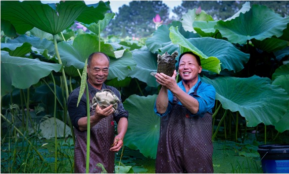 实现乡村振兴,必须走出一条立足乡村的绿色可持续发展道路。经过系列调研和走访,方泳提出了因地制宜发展“高效生态农业”的理念,并着手实施了一系列创新措施。通过与多所高等院校合作开展农业产学研一体化项目,打造了“共富工坊”,推出了“运河鲜米”、“荷塘甲鱼”、“荷叶茶”等特色农产品品牌,同时积极发展生态旅游和农耕文化体验活动,利用直播平台推广乡村文化,吸引更多年轻人参与到乡村建设中来。