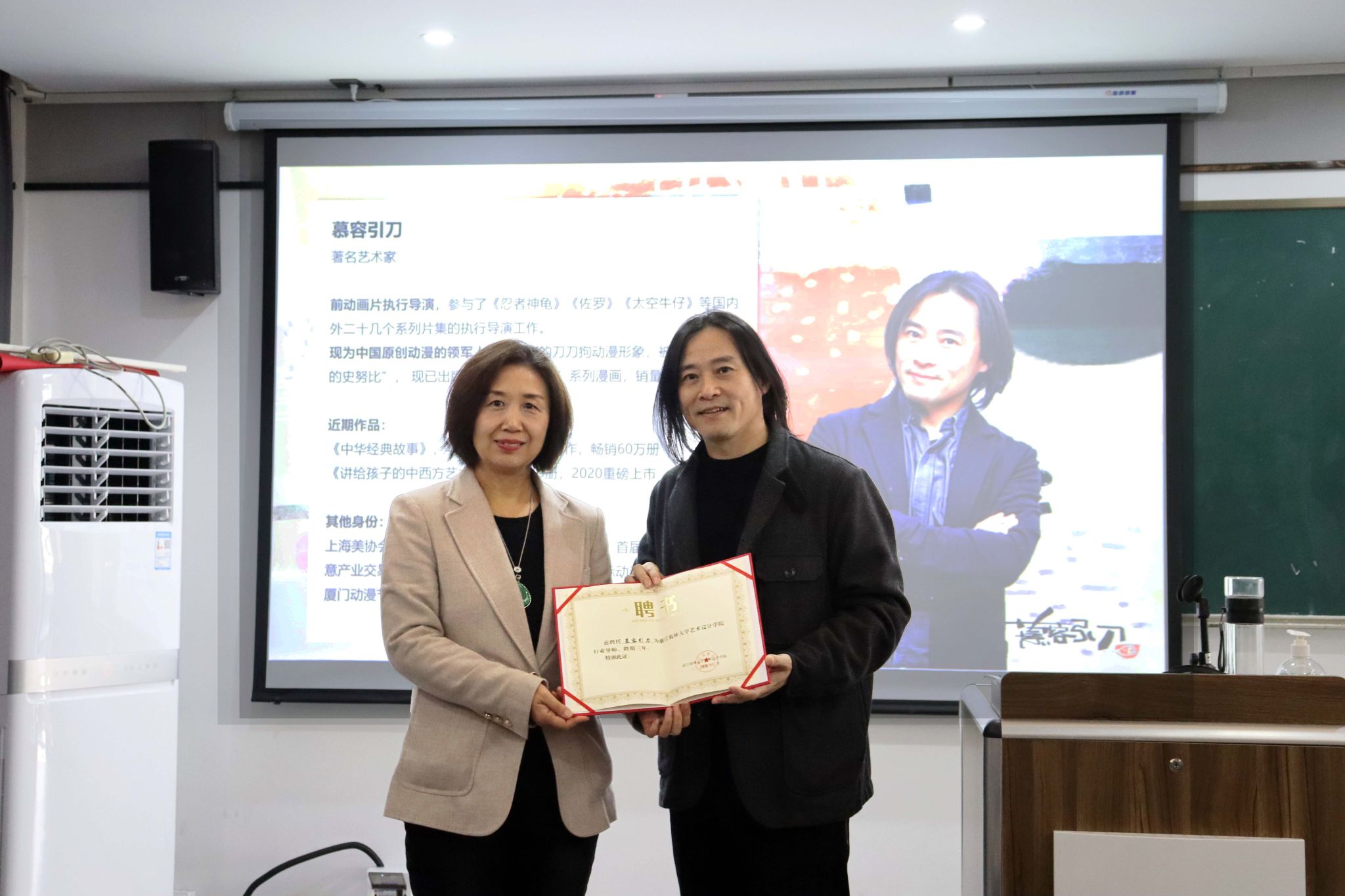 讲座现场气氛热烈,师生们纷纷就艺术的创作与生活的关系等相关话题与慕容引刀进行了深入交流,在场师生们受益匪浅。现场还聘请慕容引刀为BEAT365英国官网艺术设计学院行业导师。