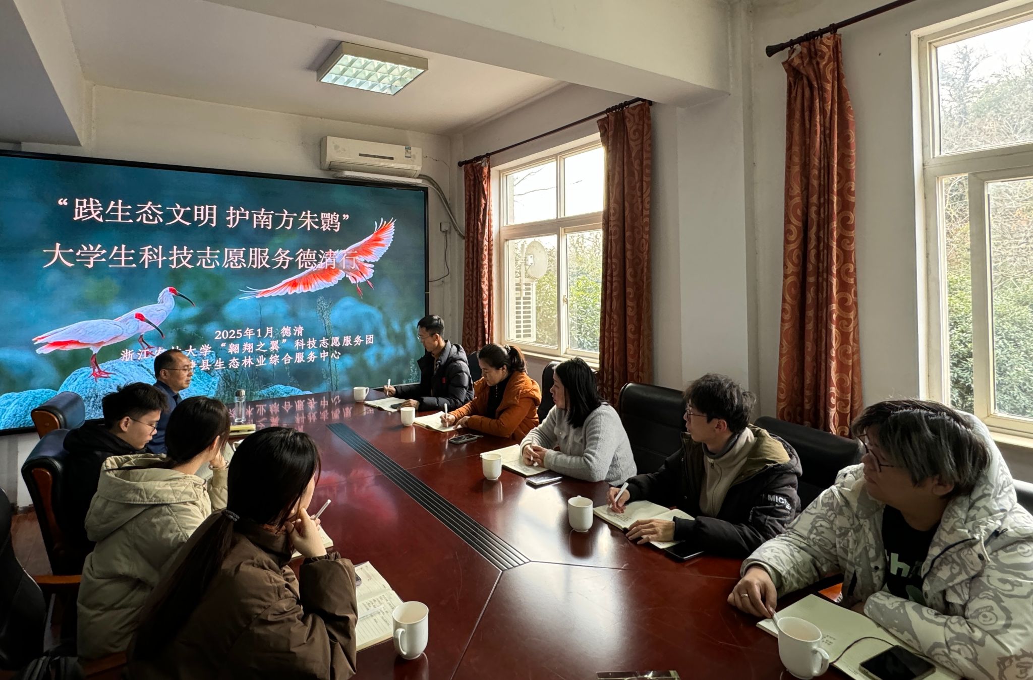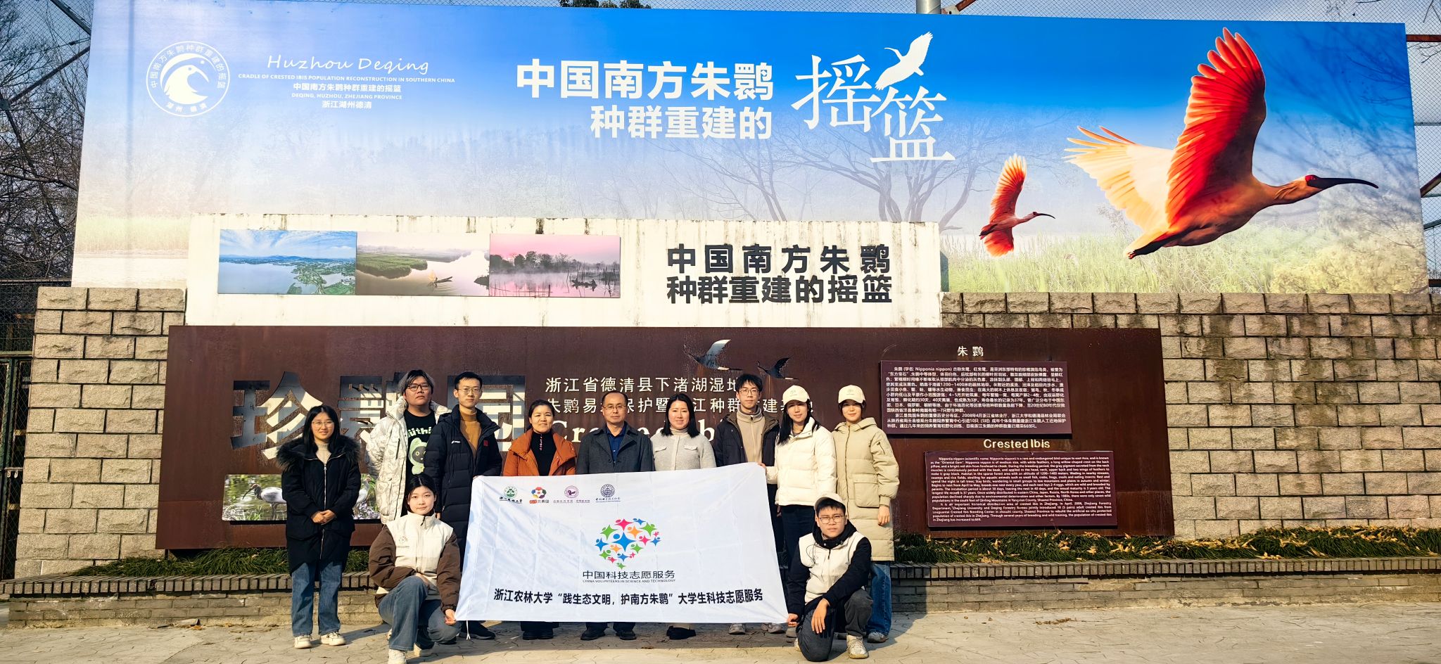 1月20日,动科动医学院“践生态文明,护南方朱鹮”师生志愿服务团队的9位核心成员,在学院党委书记魏玲玲的带领下,赴浙江省朱鹮抢救保护基地中心开展座谈调研,深入讨论朱鹮保护科技志愿服务的内容和需求。