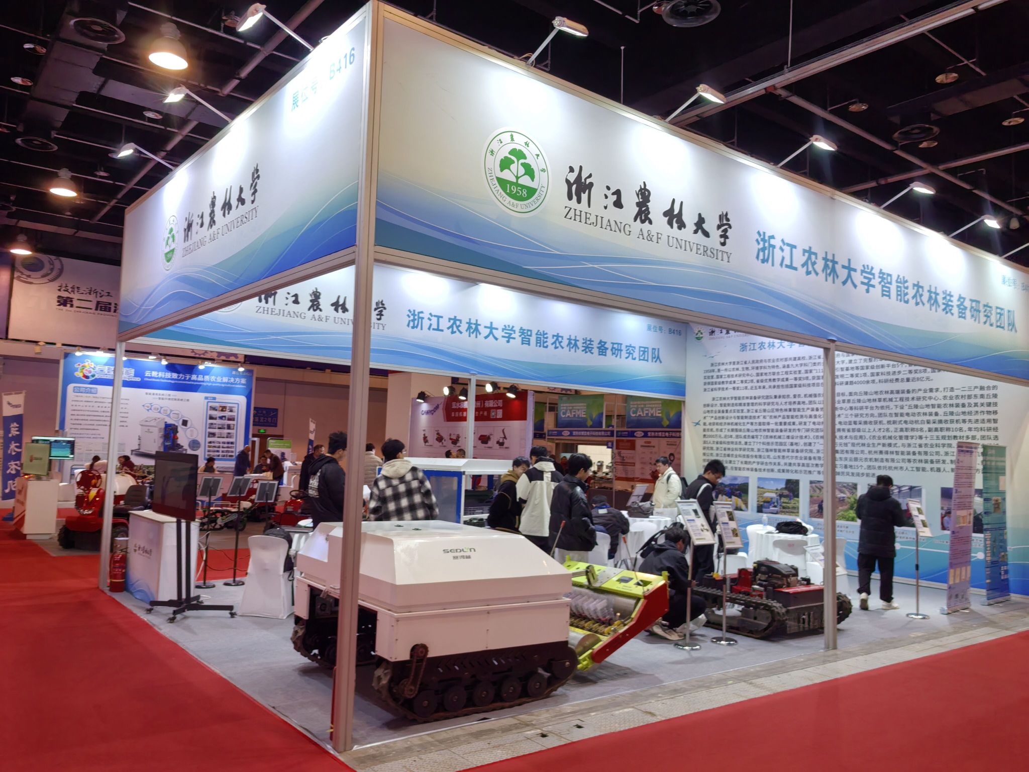 3月6日,以“绿色智慧 科技互联”为主题的第三届中国丘陵山区农业机械博览会暨中国(永康)农林装备博览会在浙江永康国际博览中心开幕。BEAT365智能农林装备研究团队携多款电动智能装备、智慧农业整体解决方案及科研样机展板精彩亮相,全面展示了BEAT365农业工程/机械工程学科在助力农业“双强”行动中的创新成果与产学研推实践探索。