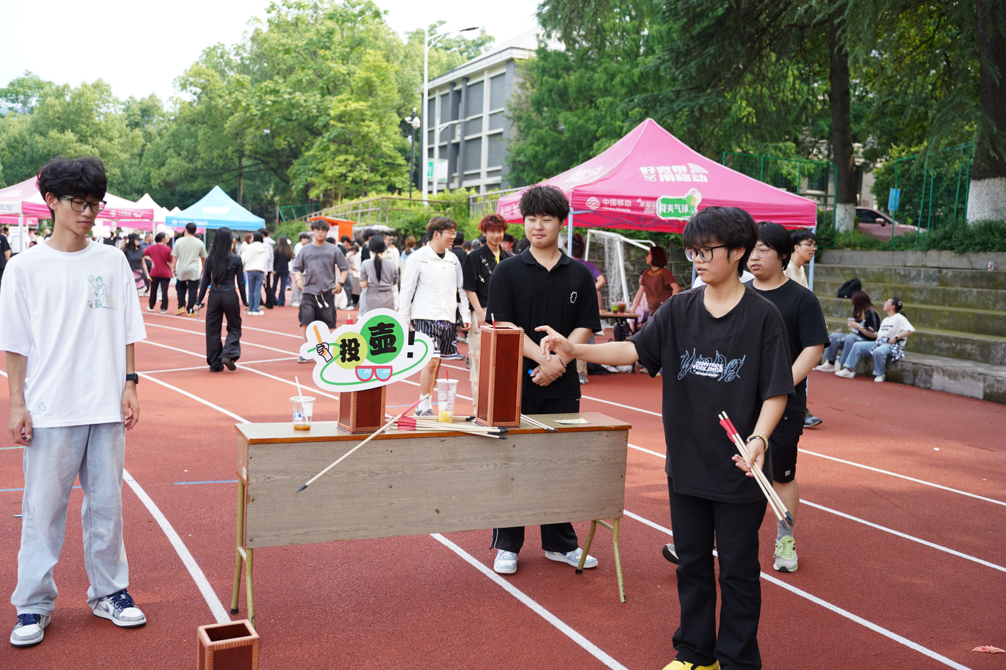 欢乐竞技场以趣味游戏为载体,激发团队协作与个人潜能。投壶、背夹气球、贴鼻子等游戏中参与者通过打卡集章兑换礼品,在互动中感受快乐与成就感。“心灵焕新·物暖人心”二手跳蚤市场倡导资源循环利用,学生们积极交换闲置物品,以实际行动践行绿色生活理念。活动还特别设置心愿树环节,师生们写下心愿与自我肯定的话语,贴于树上并合影留念,传递积极向上的心理能量。