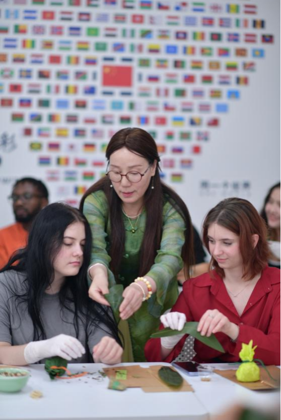 端午将至,为促进国际学生对中国传统节日的理解,近日,国教学院精心策划了一系列别具特色的端午节文化体验活动。来自30余个国家的百余名国际学生齐聚一堂,通过包粽子、制香囊等传统习俗活动,全方位感受端午文化。