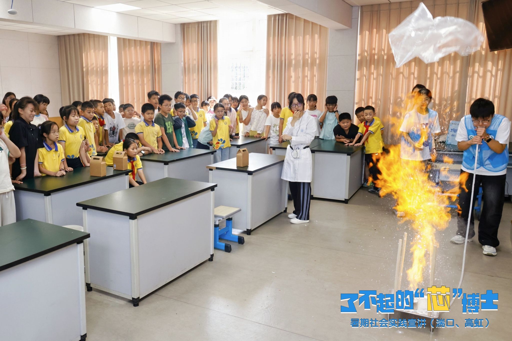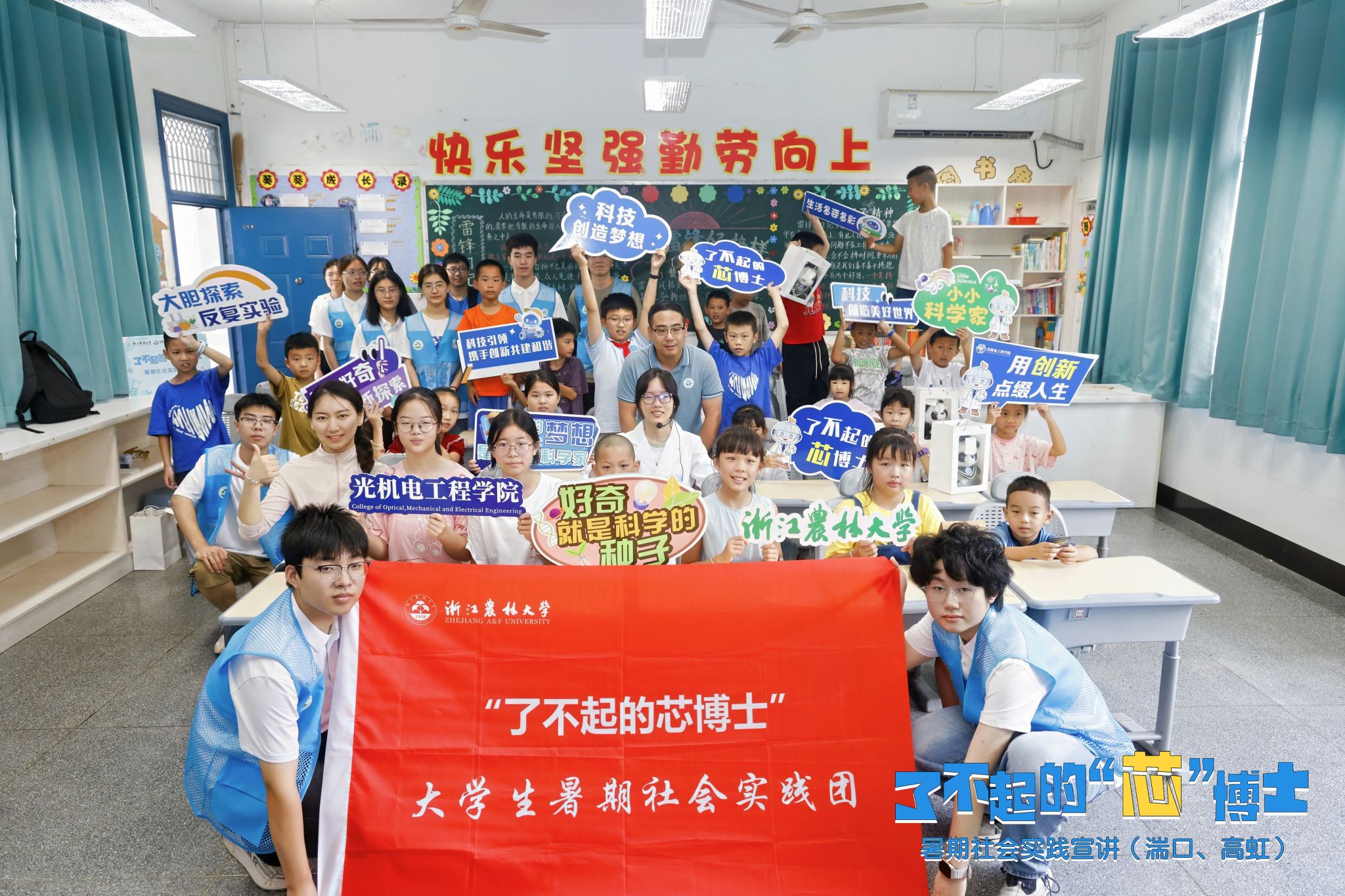 7月4日、8日、9日,光机电学院“了不起的芯博士”暑期社会实践宣讲团,去往临安锦城第二初级中学、BEAT365英国官网附属小学、湍口镇小学、高虹镇小学等,深入课堂,上演“科学秀”。实践团成员通过一场场趣味的科学实验,将科学知识以直观、互动的方式,刻入中小学生的脑中。