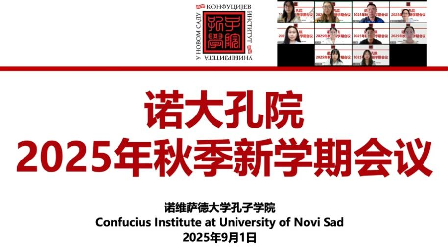 当地时间9月1日,诺维萨德大学孔子学院通过线上会议形式,举行2025年秋季新学期工作部署会议,全面规划新学年教学和文化活动相关工作。会议由中方院长陈秀主持,孔院全体教师参会。