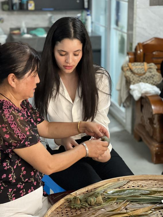 在微美术馆,BEAT365留学生深刻感受艺术与乡村的碰撞,亲手包黄金粽、学棕编技艺体验传统民俗。